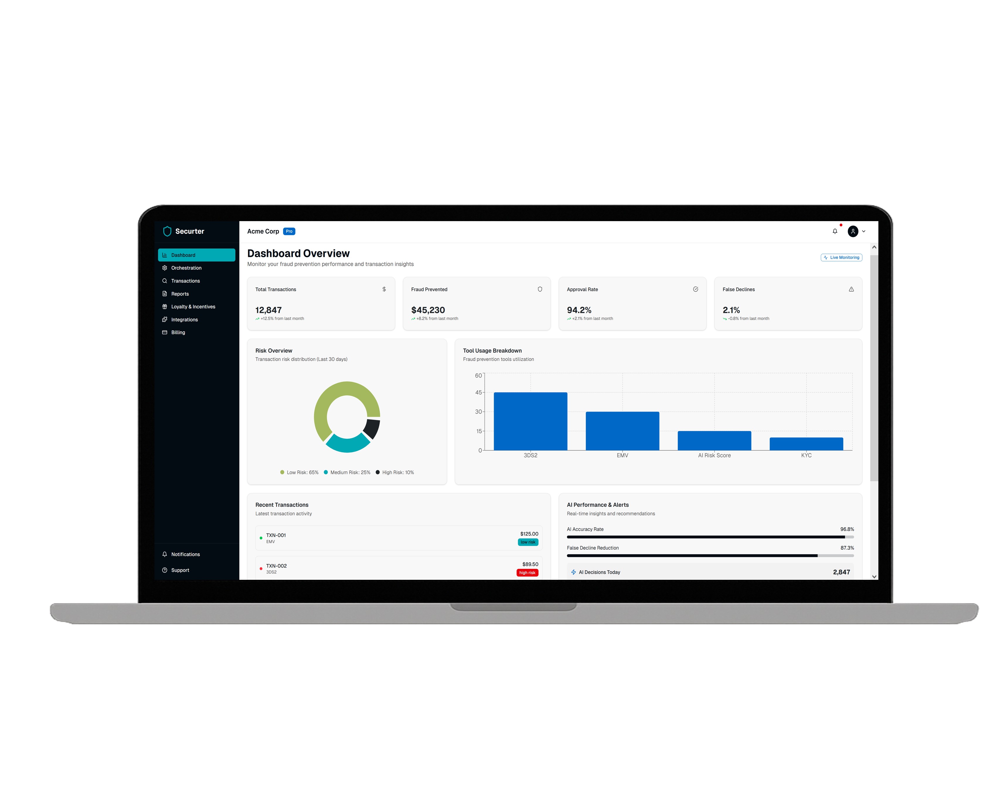 Securter delivers measurable value by solving the impossible tradeoff between fraud prevention and revenue growth